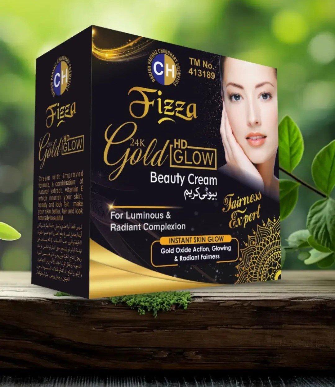 Reveal naturally glowing and radiant skin with Fizza 24K Gold HD Glow Beauty Cream. This advanced skincare formula is designed to improve dull and uneven skin tone while enhancing your natural beauty. With its gold glow technology, the cream helps provide a smooth, luminous, and healthy-looking complexion.