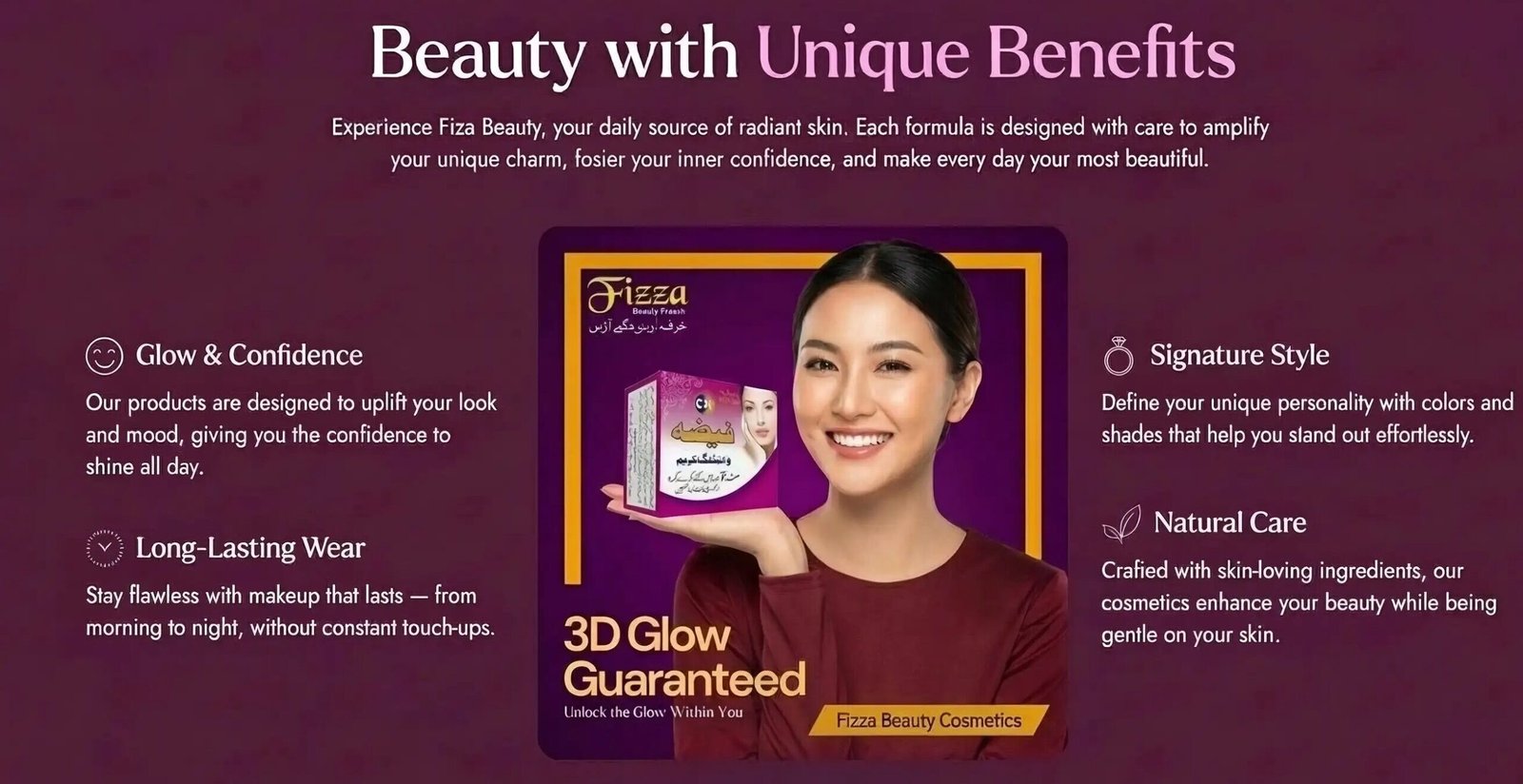 Fizza Whitening Cream is a specially formulated skincare cream designed to improve skin brightness, reduce dullness, and enhance natural beauty.